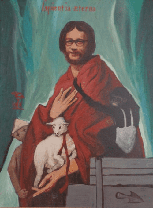 Еще при жизни выдающийся вроцлавский деятель театрального цеха имел честь быть изображенным на необычном портрете, где выглядит одновременно как античный мудрец и как святой с иконы. Автором картины был Вальдемар Кригер, архитектор всех спектаклей Театра-Лаборатории. Надпись на латыни – Sapientia Aeterna – означает «вечная мудрость».