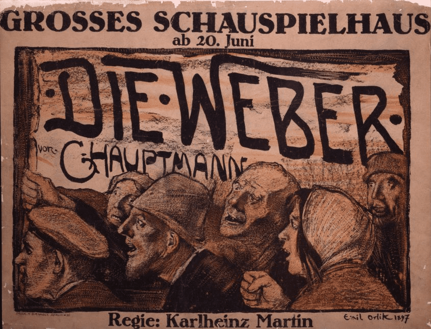 Особливо слід виділити драматичну поему “Die Weber” (“Ткачі”), 1892. Вона реалістично й точно описує важке економічне становище сілезьких робочих. Героєм є натовп, склад якого в кожній дії змінюється. В особі голодних ткачів, які організували заколот, змальовується трагедія загальнолюдського горя. “У кожної людини має бути мрія”, – так автор у кінці підсумовує мотив своєї драми.